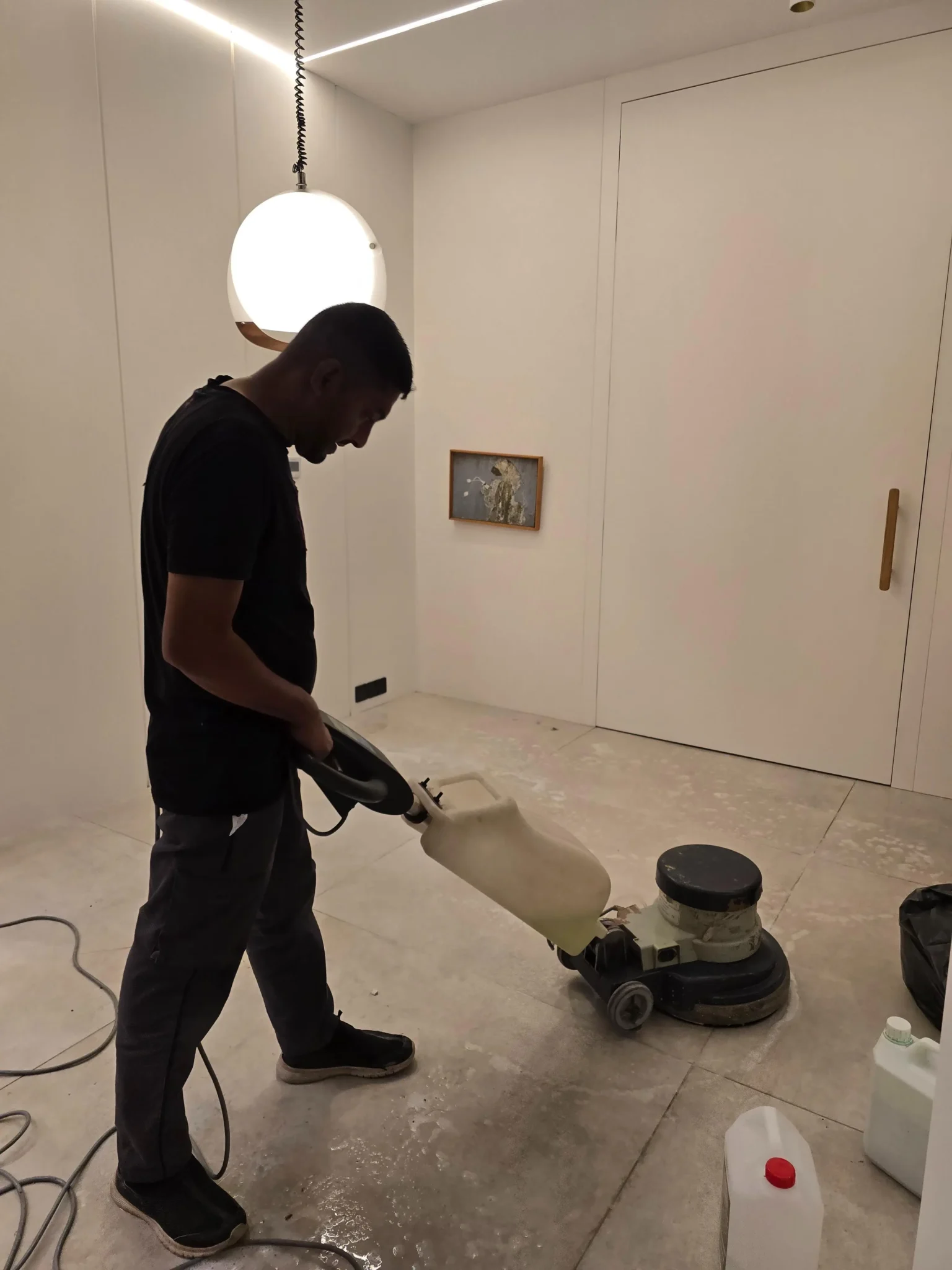 - Grout and tile scrubbing in bathrooms and kitchen